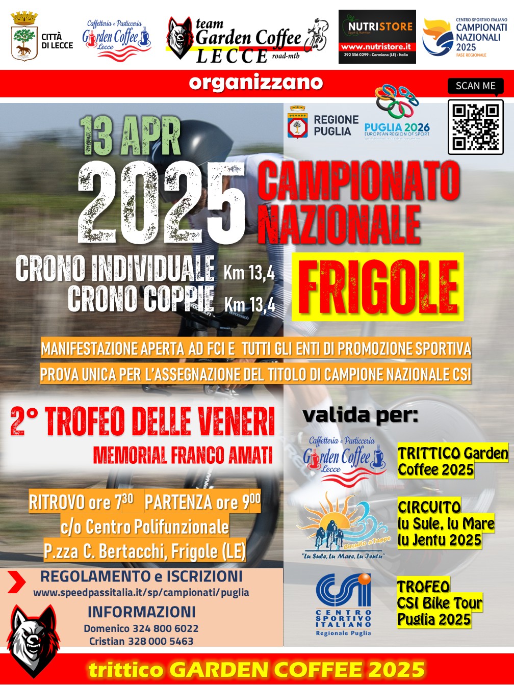 La A.s.d. TEAM AMICI TE LU GARDEN organizza per il giorno 13 APRILE 2025 una gara ciclistica, tipo crono.