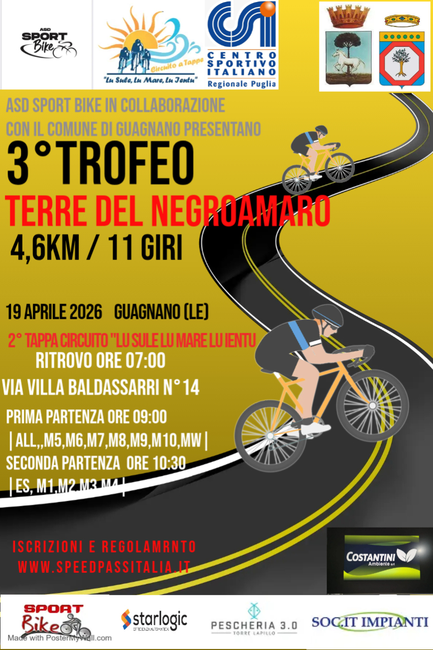 La A.s.d. SPORT BIKE organizza per il giorno 19 APRILE 2026 una gara ciclistica.