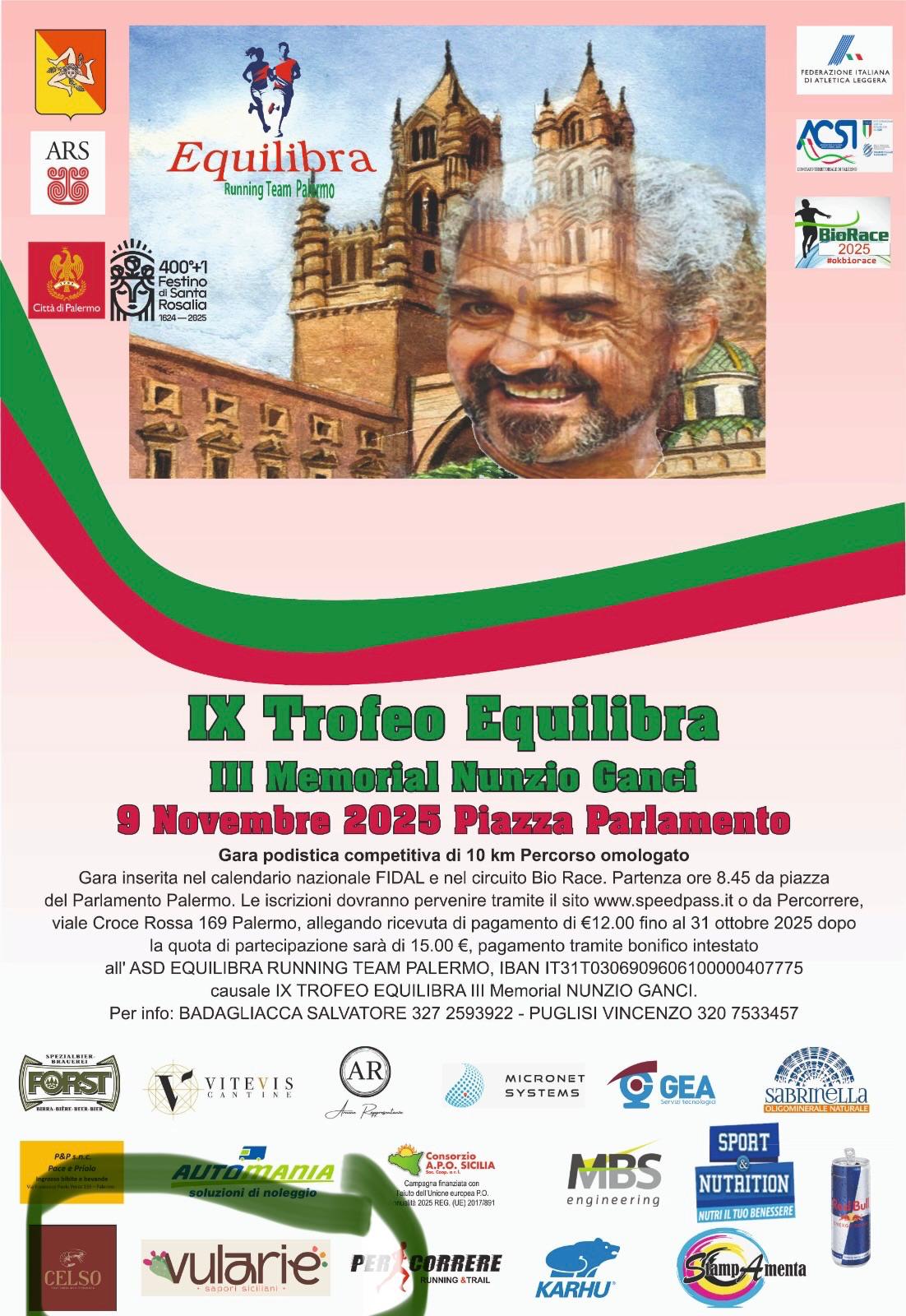 L’A.S.D EQUILIBRA RUNNING TEAM PA affiliata F.I.D.A.L. ed EPS ACSI Sicilia Occidentale, organizza la manifestazione di atletica leggera di corsa su strada inserita in Calendario Territoriale FIDAL.